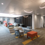 De kantoorruimte bevindt zich op de tweede verdieping, waar verschillende sferen en (werk)plekken zijn gemaakt voor formeel en informeel overleg. Deels onder een groot glasdak.